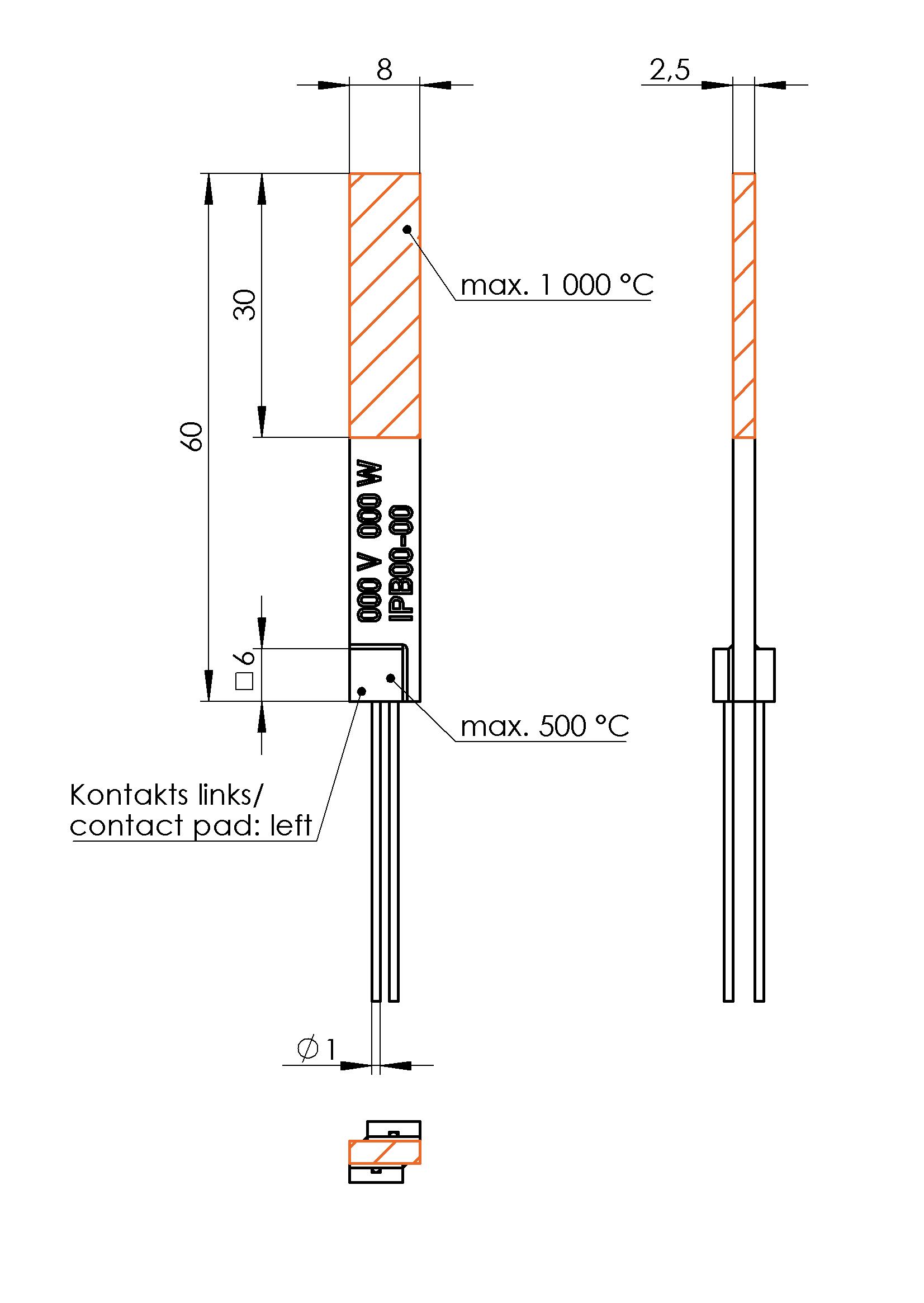 The glow igniters of the type IPB make it possible to achieve (ignition) temperatures of up to 1 000 °C with a very compactly built heating element with a rated. The two available versions, differ in the orientation of the electrical contacts. The small glow igniters can be used not only as igniters - for example of wood pellets - but can also be used for contact heating of various substrates as well as for the ignition of process gases.